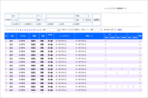 | メルマガ・メーリングリスト機能:顧客管理データを基に権限や配信先管理を行い、メルマガやメーリングリストを予約配信する機能。 | |