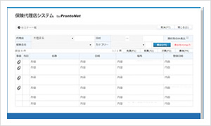 複数保険会社の商品を取り扱う、保険代理店向けの管理システムです。顧客管理、対応履歴管理、日報管理、講習会参加履歴管理、販売履歴管理など、代理店業務に必要な処理を一括管理すると共に、業務の効率化を支援します。